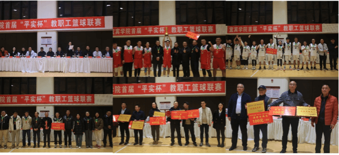 11月17日晚,宜宾学院首届“平实杯”教职工篮球赛颁奖仪式暨闭幕式在临港校区体育馆二楼篮球馆隆重举行。本次赛事由宜宾学院工会委员会主办,中国农业银行宜宾分行协办,体育与大健康学院和宜宾学院教职工篮球协会承办。宜宾学院党委常委、副院长、体委主任杨强,中国农业银行宜宾分行党委委员、副行长张泓澍出席仪式。仪式活动由校工会常务副主席刘祚玉主持。