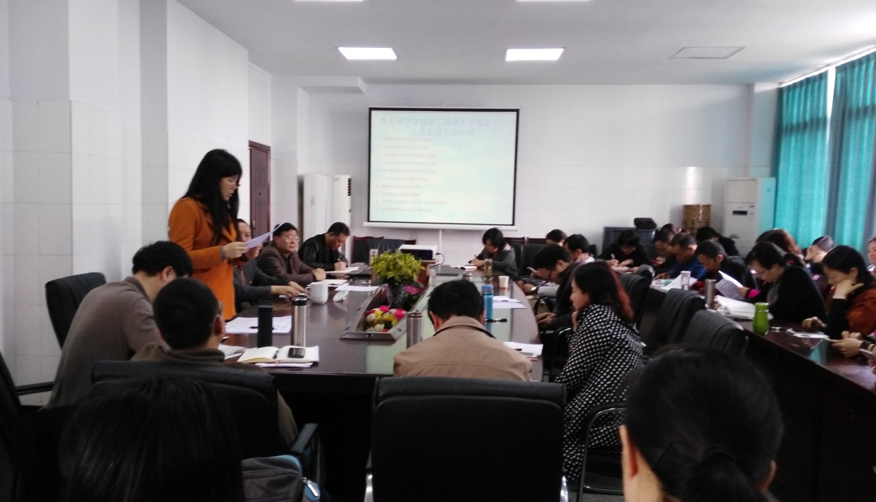321日下午1430,教育科学学院第二届第五次教职工暨工会会员大会在艺术楼教育科学学院会议室举行,教育科学学院工会副主席肖莉主持会议。